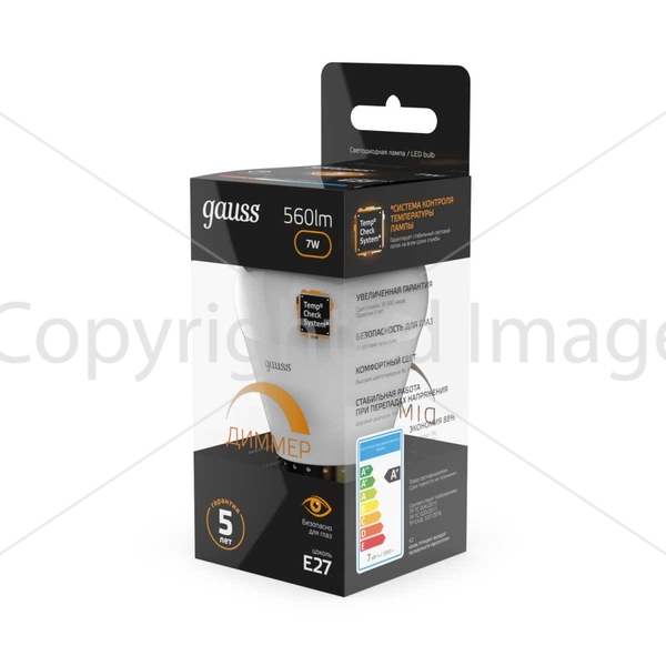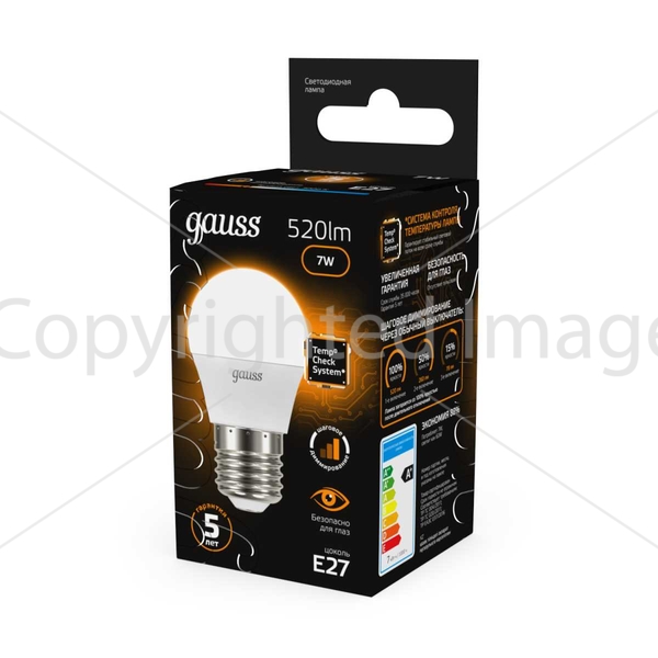 Светодиодная лампочка .в форме шара с цоколем E27 и размерами 87 мм по высоте и диаметром в 45 мм обладает мощностью в 6 W, благодаря чему она может осветить 3 кв. м. Цветовая температура – 2700 К, т.е. теплый свет, создающий атмосферу уюта. Изделие рассчитано на использование в сети с переменным напряжением в 220-240В.