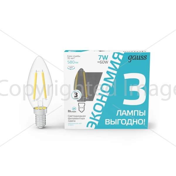 Лампа cветодиодная филаментная Gauss E14 7W 4100K прозрачная 3 шт. 103901207T