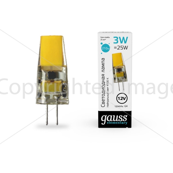 Лампа cветодиодная Gauss G4 3W 4100K прозрачная 18723