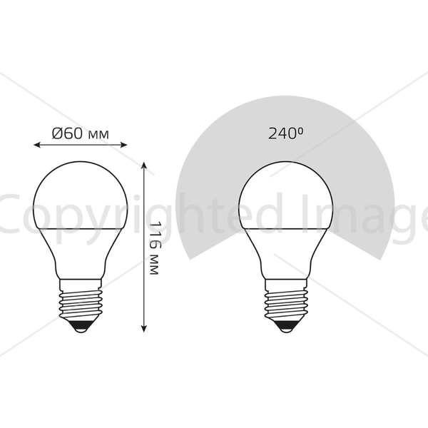 Светодиодная лампочка .в форме груши с цоколем E27 и размерами 110 мм по высоте и диаметром в 60 мм обладает мощностью в 15 W, благодаря чему она может осветить 7 кв. м. Цветовая температура – 6500 К, т.е. холодный свет синего оттенка (не рекомендуется для применения на кухне, так как искажает цвет готовых блюд). Изделие рассчитано на использование в сети с переменным напряжением в 220-240В.