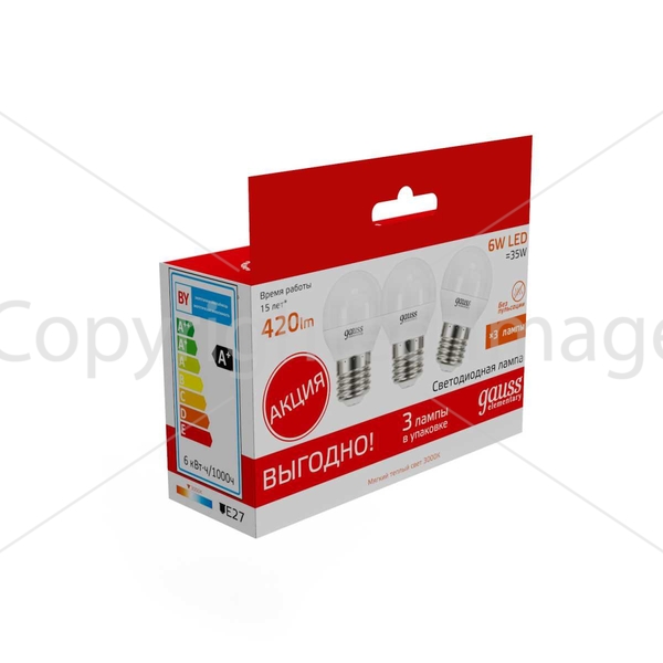 Лампа светодиодная Gauss E27 6W 3000K матовая 53216