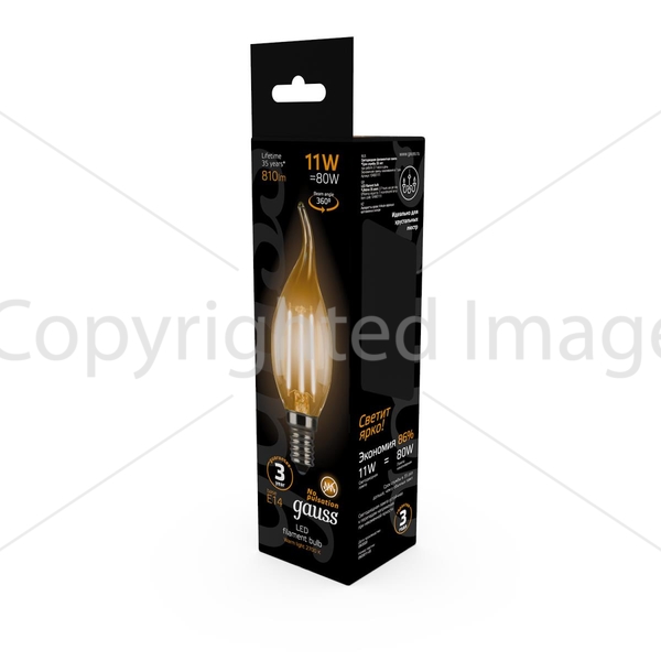 Лампа светодиодная филаментная Gauss E14 11W 2700К прозрачная 104801111