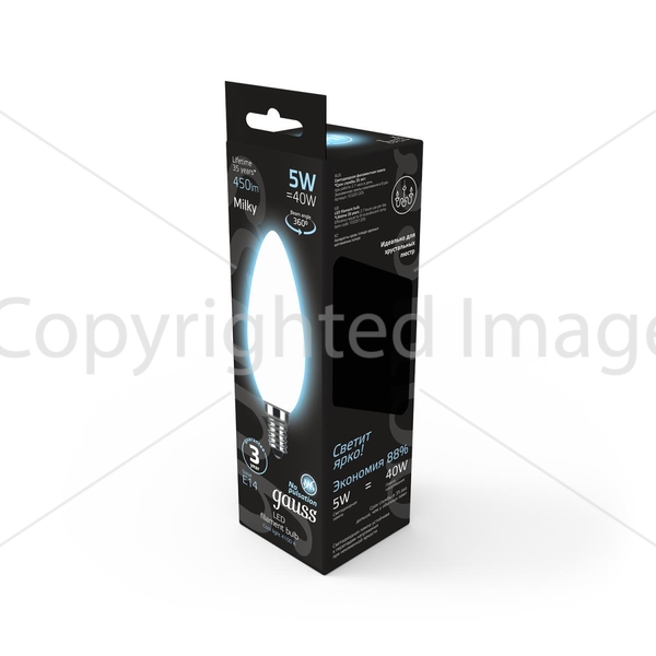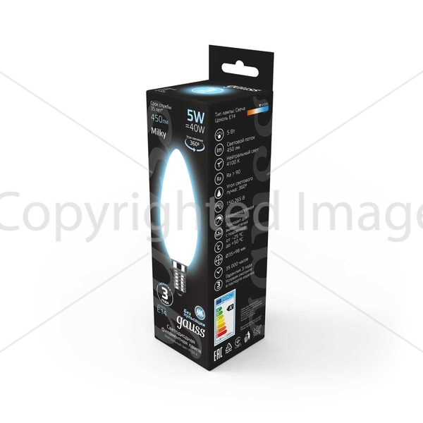 Светодиодная лампочка .в форме свечи с цоколем E14 и размерами 97 мм по высоте и диаметром в 35 мм обладает мощностью в 5 W, благодаря чему она может осветить 2 кв. м. Цветовая температура – 4100 К, т.е. белый свет, подходящий для рабочего настроя (не рекомендуется для детской комнаты). Изделие рассчитано на использование в сети с переменным напряжением в 165-265В.