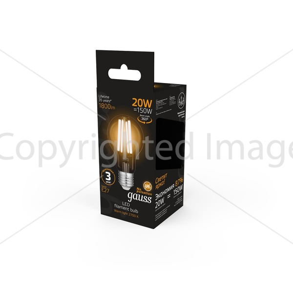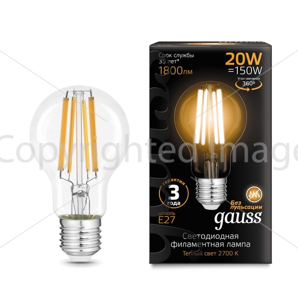 Лампа светодиодная филаментная Gauss E27 20W 2700K прозрачная 102902120