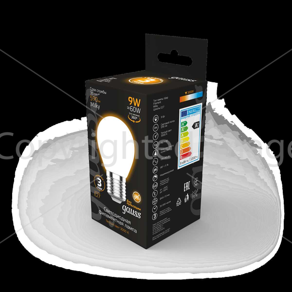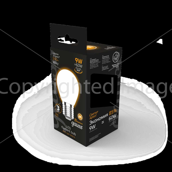 Светодиодная лампочка .в форме шара с цоколем E27 и размерами 72 мм по высоте и диаметром в 45 мм обладает мощностью в 9 W, благодаря чему она может осветить 3 кв. м. Цветовая температура – 3000 К, т.е. теплый свет, создающий атмосферу уюта. Изделие рассчитано на использование в сети с переменным напряжением в 220-240В.