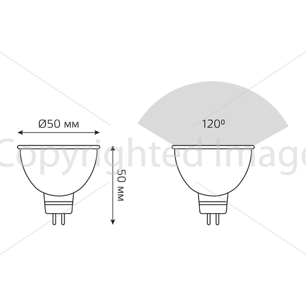 Светодиодная лампочка .в форме полусферы с цоколем GU5.3 и размерами 55 мм по высоте и диаметром в 50 мм обладает мощностью в 5 W, благодаря чему она может осветить 2 кв. м. Цветовая температура – 4100 К, т.е. белый свет, подходящий для рабочего настроя (не рекомендуется для детской комнаты). Изделие рассчитано на использование в сети с переменным напряжением в 220-240В.