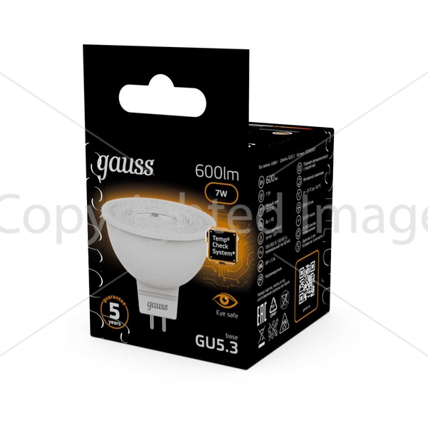 Лампа светодиодная Gauss GU5,3 7W 3000K прозрачная 101505107