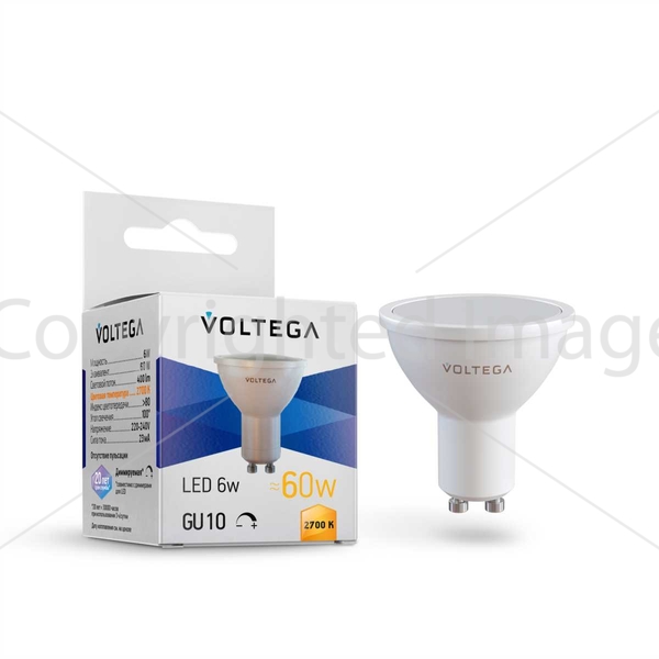 Лампа светодиодная диммируемая Voltega GU10 5W 2700K матовая 7238