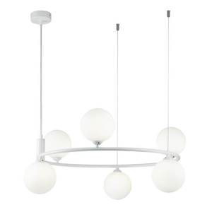 Исключительная модель MOD013PL-06W от немецкой компании Maytoni относится к коллекции Ring и отлично подойдет для установки на потолок кухни, оформленной в скандинавском стиле. Подвесная люстра Maytoni Ring MOD013PL-06W с круглыми плафонами осветит помещение площадью 8 кв. м. Производитель Maytoni рекомендует использовать для устройства энергосберегающие лампы с цоколем G9 и мощностью 25 W. Прибор произведен с использованием материалов: стекло и металл и может использоваться для натяжного потолка. Основным цветом товара является белый. Торопитесь сделать заказ в интернет-магазине Top Lamp.
