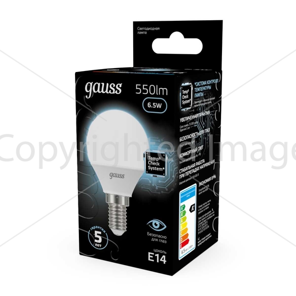 Светодиодная лампочка .в форме шара с цоколем E14 и размерами 87 мм по высоте и диаметром в 45 мм обладает мощностью в 6 W, благодаря чему она может осветить 3 кв. м. Цветовая температура – 4100 К, т.е. белый свет, подходящий для рабочего настроя (не рекомендуется для детской комнаты). Изделие рассчитано на использование в сети с переменным напряжением в 150-265В.