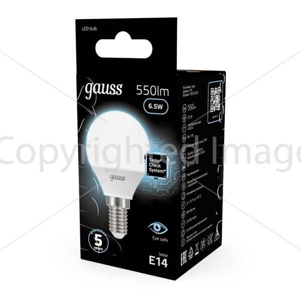 Лампа светодиодная Gauss E14 6.5W 4100K матовая 105101207