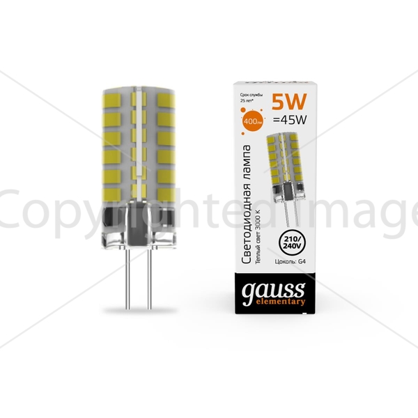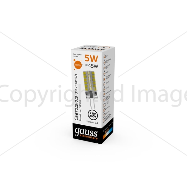 Лампа cветодиодная Gauss G4 5W 3000K прозрачная 18015