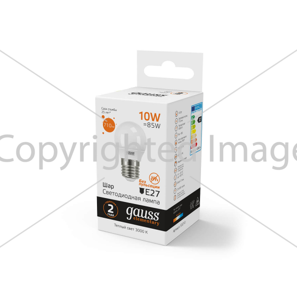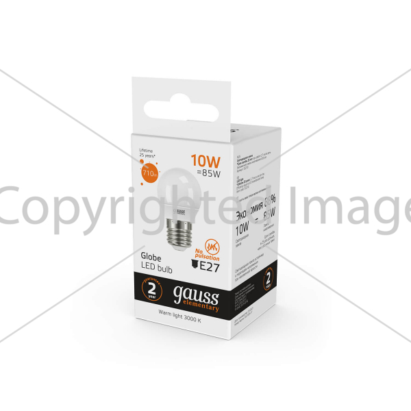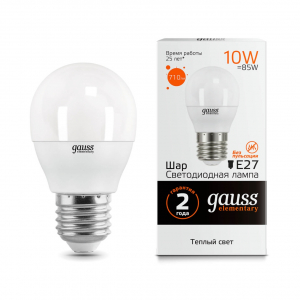 Светодиодная лампочка .в форме шара с цоколем E27 и размерами 86 мм по высоте и диаметром в 45 мм обладает мощностью в 10 W, благодаря чему она может осветить 3.3 кв. м. Цветовая температура – 3000 К, т.е. теплый свет, создающий атмосферу уюта. Изделие рассчитано на использование в сети с переменным напряжением в 220-240В.