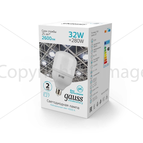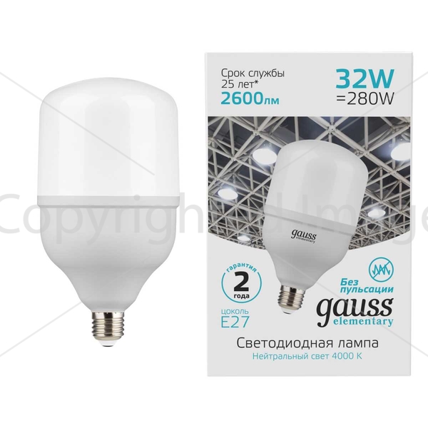 Лампа светодиодная Gauss E27 32W 4000K матовая 63233