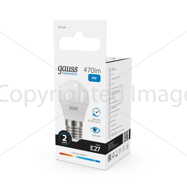 Светодиодная лампочка .в форме шара с цоколем E27 и размерами 89 мм по высоте и диаметром в 45 мм обладает мощностью в 6 W, благодаря чему она может осветить 3 кв. м. Цветовая температура – 6500 К, т.е. холодный свет синего оттенка (не рекомендуется для применения на кухне, так как искажает цвет готовых блюд). Изделие рассчитано на использование в сети с переменным напряжением в 220-240В.