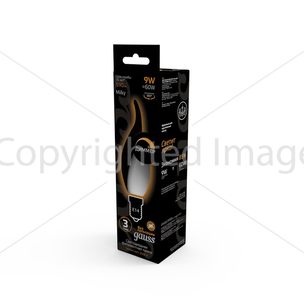 Светодиодная лампочка .в форме свечи на ветру с цоколем E14 и размерами 120 мм по высоте и диаметром в 35 мм обладает мощностью в 9 W, благодаря чему она может осветить 3 кв. м. Цветовая температура – 3000 К, т.е. теплый свет, создающий атмосферу уюта. Изделие рассчитано на использование в сети с переменным напряжением в 220-240В.