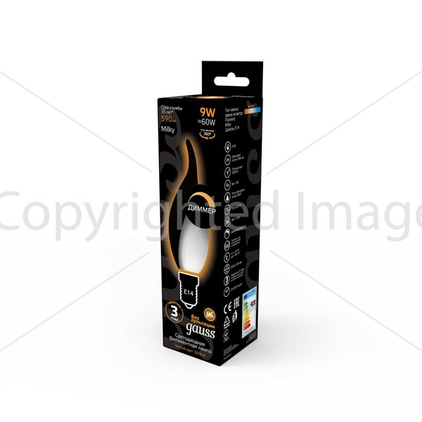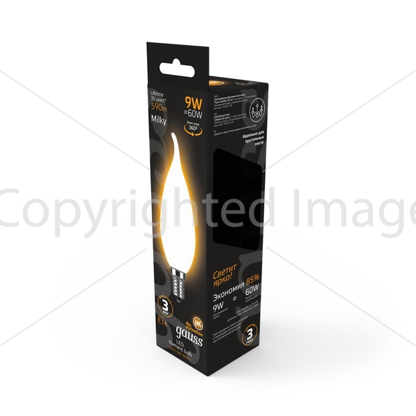 Лампа светодиодная филаментная Gauss E14 9W 3000К матовая 104201109