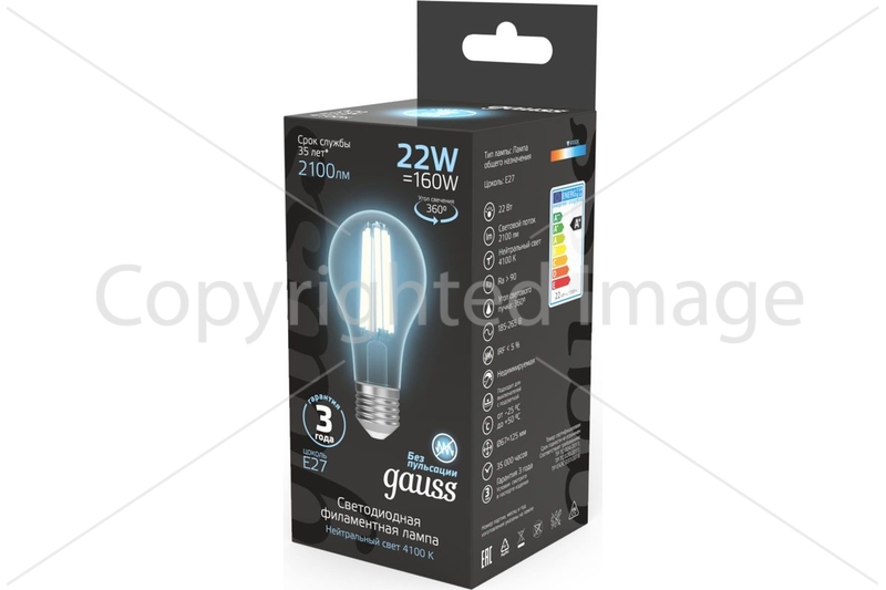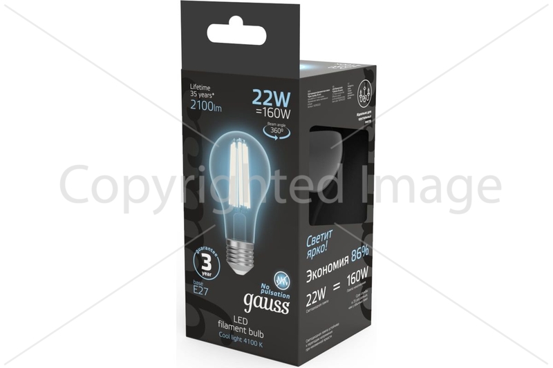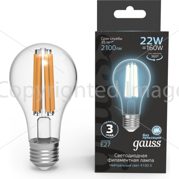 Лампа светодиодная филаментная Gauss E27 22W 4100K прозрачная 102902222
