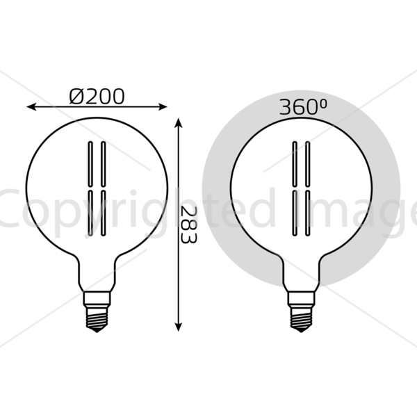 Светодиодная лампочка .в форме шара с цоколем E27 и размерами 283 мм по высоте и диаметром в 200 мм обладает мощностью в 6 W, благодаря чему она может осветить 2 кв. м. Цветовая температура – 4000 К, т.е. белый свет, подходящий для рабочего настроя (не рекомендуется для детской комнаты). Изделие рассчитано на использование в сети с переменным напряжением в 220-240В.