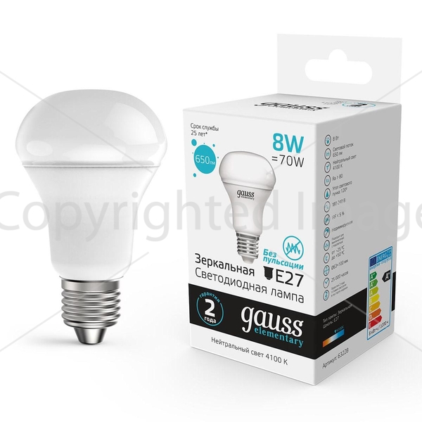 Светодиодная лампочка .в форме рефлектора с цоколем E27 и размерами 60 мм по высоте и диаметром в 40 мм обладает мощностью в 8 W, благодаря чему она может осветить 2.7 кв. м. Цветовая температура – 4100 К, т.е. белый свет, подходящий для рабочего настроя (не рекомендуется для детской комнаты). Изделие рассчитано на использование в сети с переменным напряжением в 220-240В.