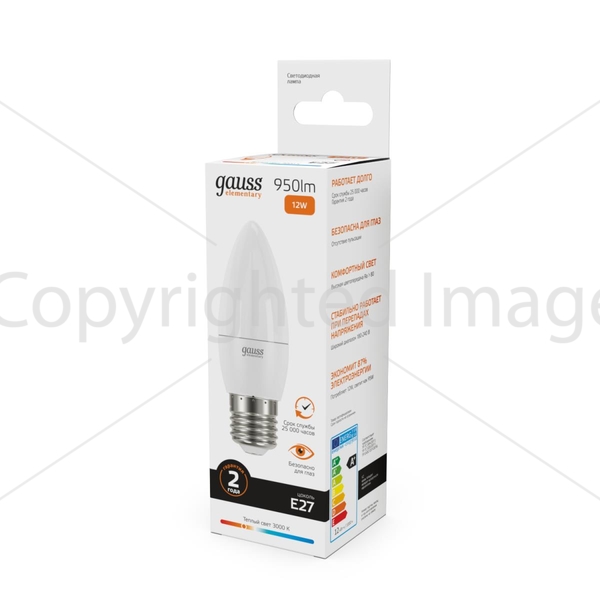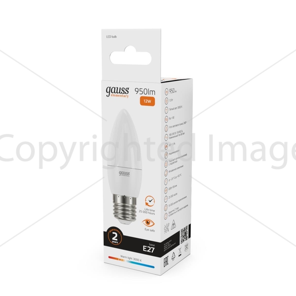 Светодиодная лампочка .в форме свечи с цоколем E27 и размерами 103 мм по высоте и диаметром в 35 мм обладает мощностью в 12 W, благодаря чему она может осветить 4 кв. м. Цветовая температура – 3000 К, т.е. теплый свет, создающий атмосферу уюта. Изделие рассчитано на использование в сети с переменным напряжением в 240В.