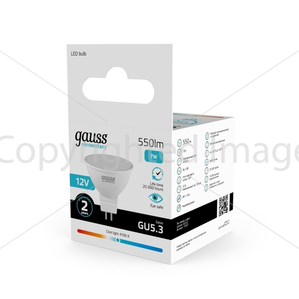 Лампа светодиодная Gauss GU5.3 7W 4100K матовая 11527