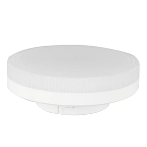 Светодиодная лампочка .в форме таблетки с цоколем GX53 и размерами 27 мм по высоте и диаметром в 75 мм обладает мощностью в 8 W, благодаря чему она может осветить 2.7 кв. м. Цветовая температура – 4100 К, т.е. белый свет, подходящий для рабочего настроя (не рекомендуется для детской комнаты). Изделие рассчитано на использование в сети с переменным напряжением в 220-240В.