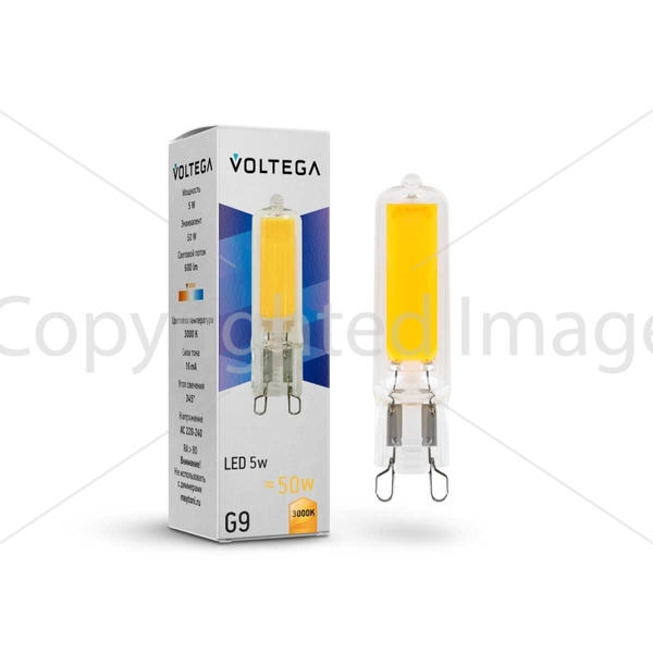 Лампа светодиодная Voltega G9 5W 3000K прозрачная 7262